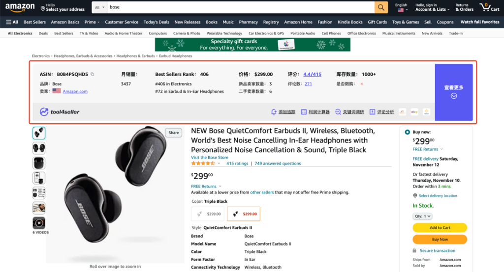 2.访问亚马逊,进入商品列表页面(包含类目页、搜索结果页等),或Listing页面,您可以看到对应插件功能。
